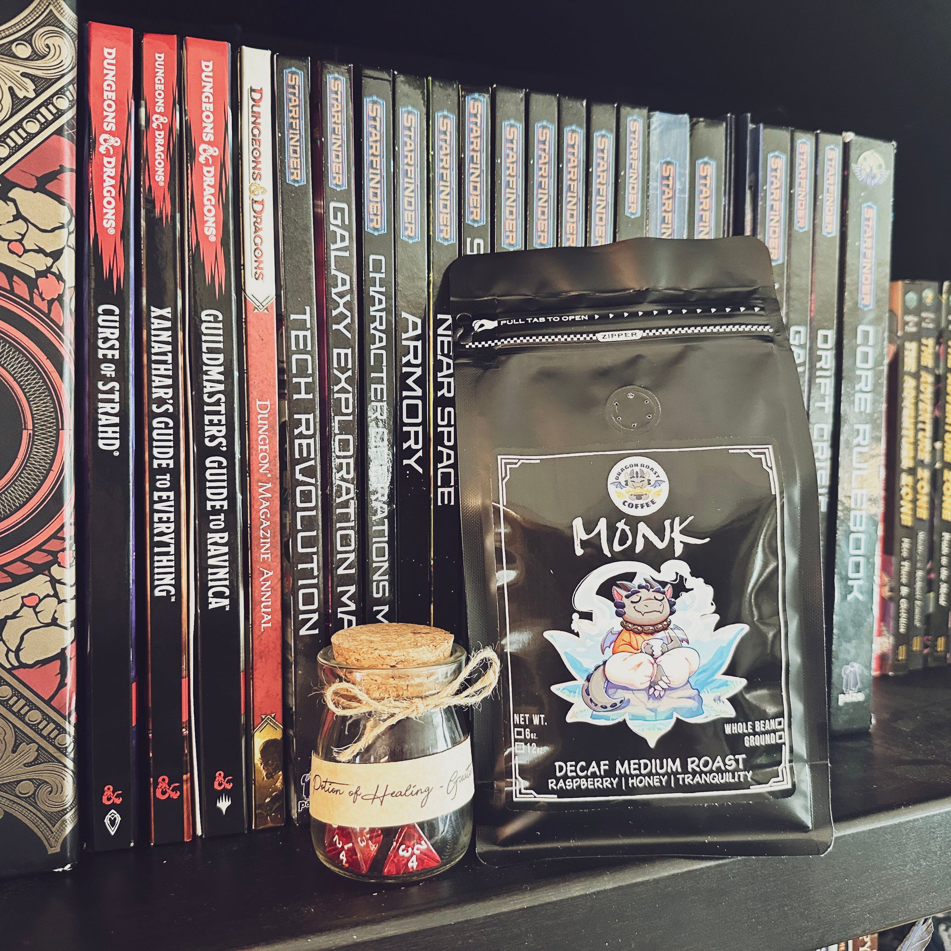 I met the dragon roast peeps at a convention and they were soooo welcoming and helpful, especially considering i knew next to nothing about coffee. i finally got to the point where i can brew this and i feel im doing the coffee justice, and it’s just so good. i always liked the taste of coffee but i assumed that the bitterness and acidity and burnt flavors in cheap or poorly made coffee were just a part of the experience, but this rogue coffee showed me that you can have all the flavor without any of the annoying parts. i’m still very new to coffee but i feel like i have this exciting world to explore thanks to the dragon roast team. now i just need to try every kind they have…