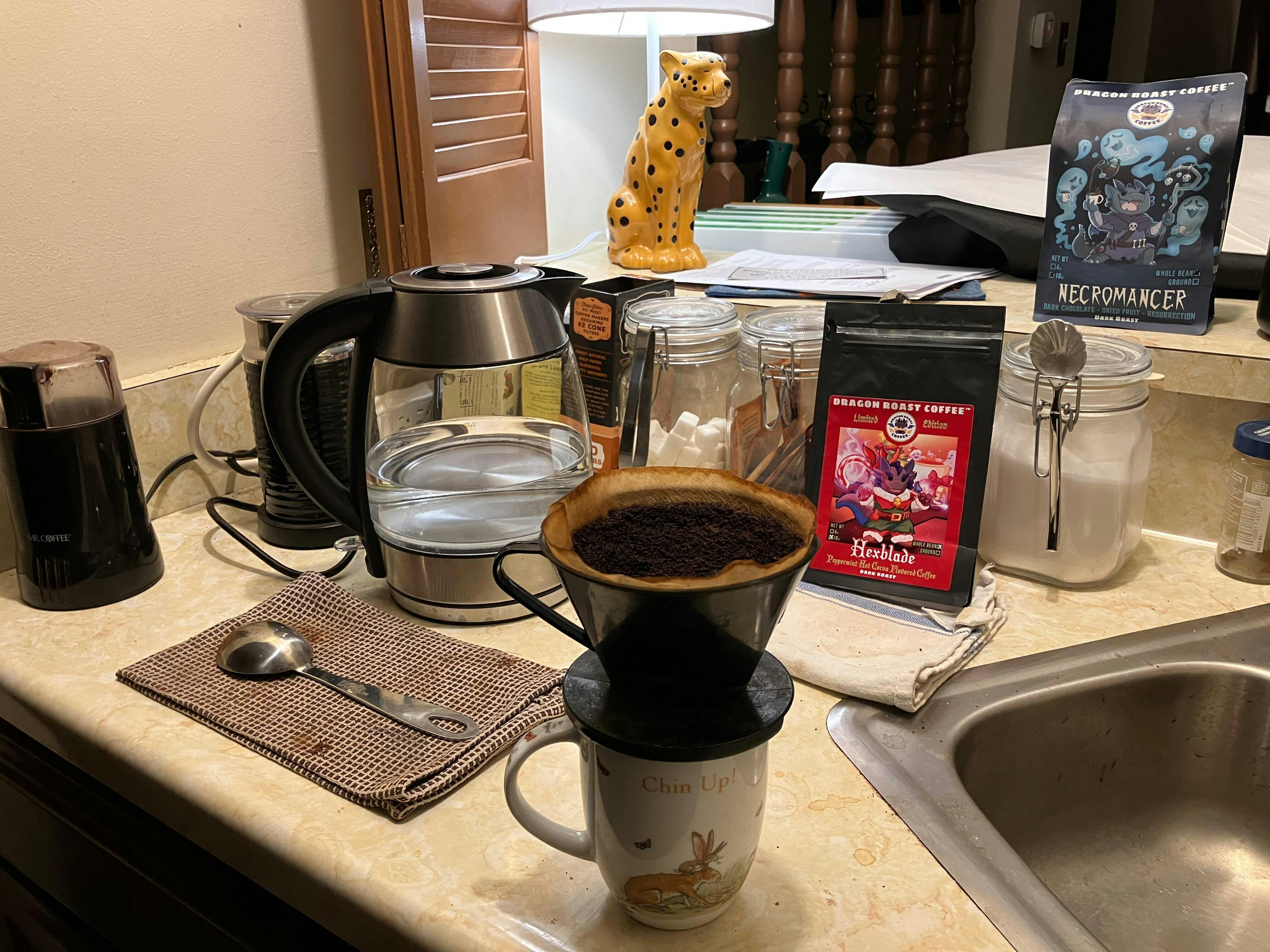 The blasphemous Oathbreaker has inspired more of our coffee companions to be led astray. Behold, Hexblade, our peppermint hot cocoa flavored coffee! A brew that blends an arcane edge with irresistible sweetness, Hexblade steps onto the field with the crisp bite of peppermint and the swirling , velvety warmth of hot chocolate. An enchanting counterpart to our beloved necromancer roast, the cool, invigorating peppermint fused with rich cocoa strikes with eldritch precision and lands every sip like a crit. Available now during the holiday season!